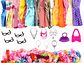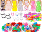 Incluye: 10 vestidos, 10 pares zapatos y 12 accesorios surtidos.